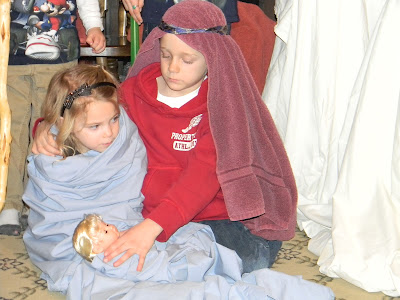 The Nativity. I especially loved how sweet Joseph (Ben) was with Mary (McKenna). He had his arm around her the whole time and kept touching the baby. It was so precious!